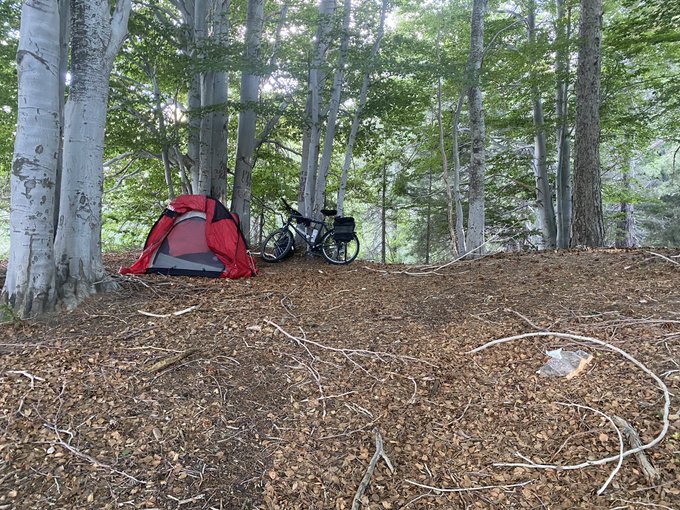 A Linguaglossa, j’ai convenu avec un guide de nous retrouver à 8h00, le lendemain de ma montée à Piano Provenzana, pour tenter le sommet. Je bivouaque donc ici avec deux arancini pour repas du soir.
