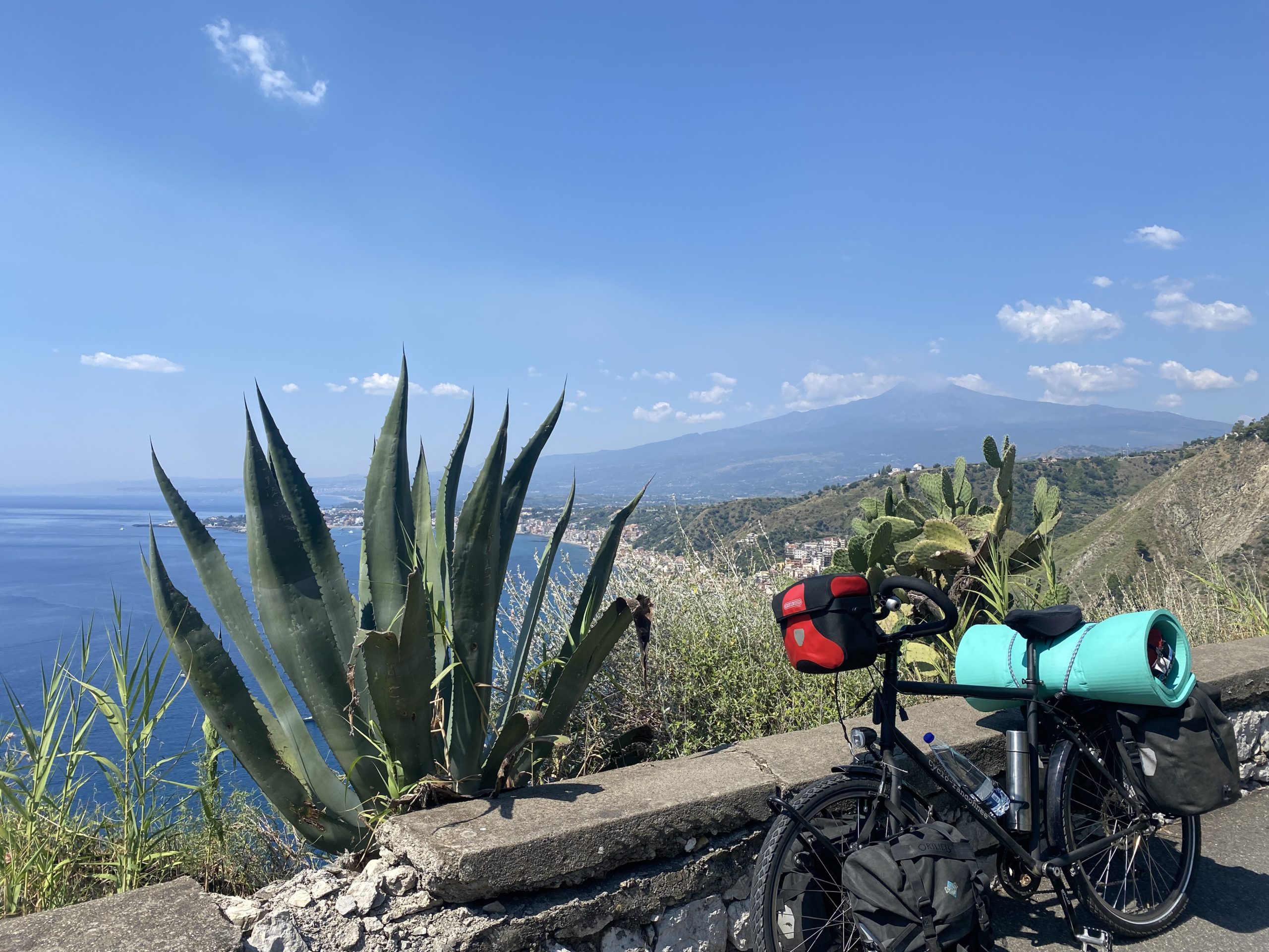 Au troisième jour de mon Tour de Sicile à vélo, j’entame donc l’ascension de l’Etna sous une grosse chaleur en effectuant, sans trop de difficulté, les 22 km qui séparent Taormina de Linguaglossa.